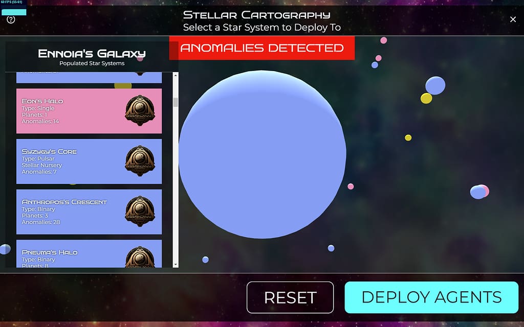 Finally, you’ll select a planet to liberate, which is the final step before diving into the game proper. Very excited about how this screen has come out. Sure the stars are just placeholders, but the textures for each planet were generated using AI, and I’m pretty stoked about how they turned out. Over time I’ll add more textures and replace those spheres with better looking assets before shipping the game to stores.