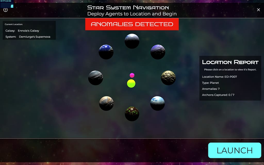 Aeon’s Ascent is more than just a card game. Explore the Astral Assemblage universe in real-time 3d right from your browser with our level selection menus. The big plan for the galaxies, I’ll keep to myself for now, but each Galaxy, Star System and Planet has its own resources, which you can collect as you liberate each planet of the Hypostasis’s Control. The spheres in the screenshot above represent a galaxy in the Astral Assemblage universe. These are placeholders for the actual in-game Galaxy assets that are still under development.